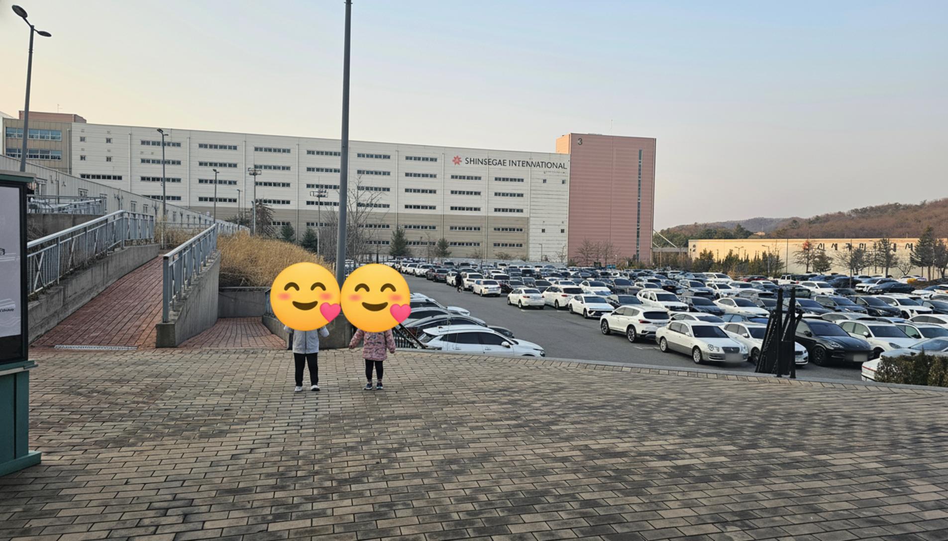 아울렛의 규모는 생각보다 훨씬 컸어요. 한쪽 테라스에서 반대편을 바라보니 신세계인터내셔날 물류센터 건물이 한눈에 들어오고, 그 아래로는 광활한 주차장이 펼쳐져 있었죠. 해 질 녘의 평온한 풍경을 잠시 감상하며 오늘 어떤 것들을 만나게 될지 기대감에 부풀었어요.
