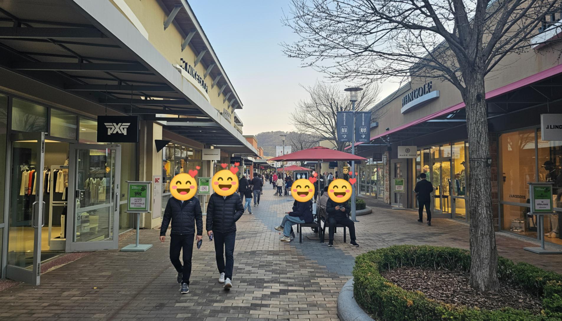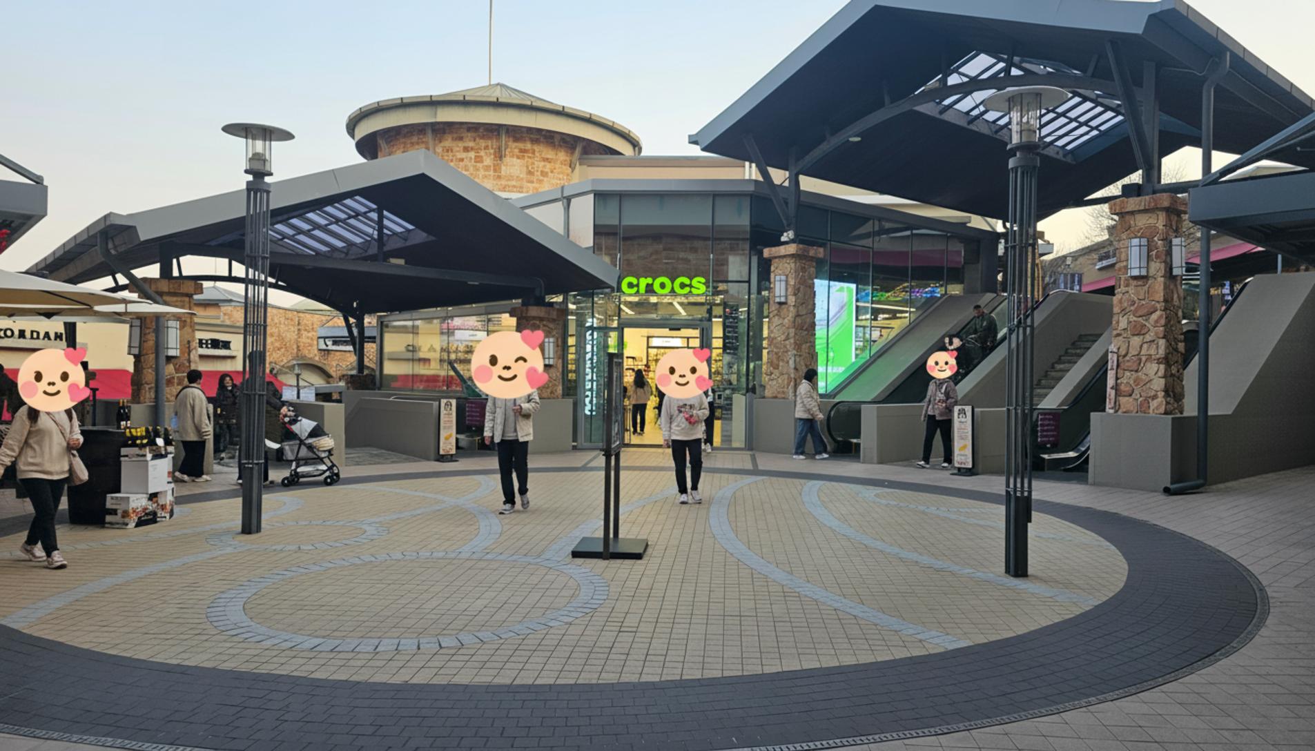 본격적으로 쇼핑 구역으로 들어서니 활기차면서도 여유로운 분위기가 가득했어요. 네온 그린 컬러의 크록스 간판이 눈에 확 띄었고, 유모차를 끌고 나온 가족 단위 방문객들의 모습에서 평화로운 주말 오후가 느껴졌어요. 딱딱한 쇼핑몰이 아니라, 잘 가꿔진 공원을 산책하는 기분이었달까요.