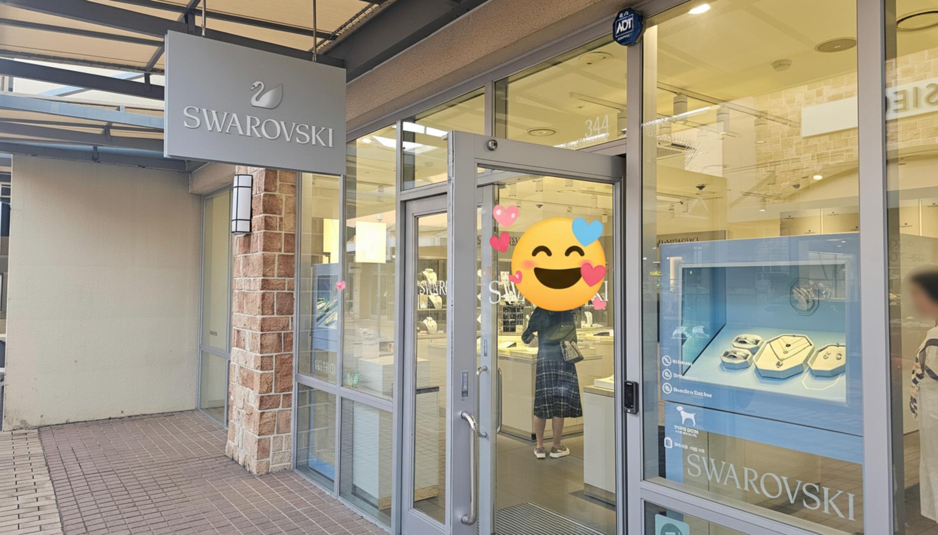 발걸음을 옮기다 보면 반짝이는 것들이 시선을 사로잡는 곳도 있어요. 스와로브스키 매장은 외관부터 우아함이 느껴졌어요. 통유리 너머로 보이는 화려한 주얼리들을 보니 저도 모르게 잠시 멈춰 서서 구경하게 되더라고요.