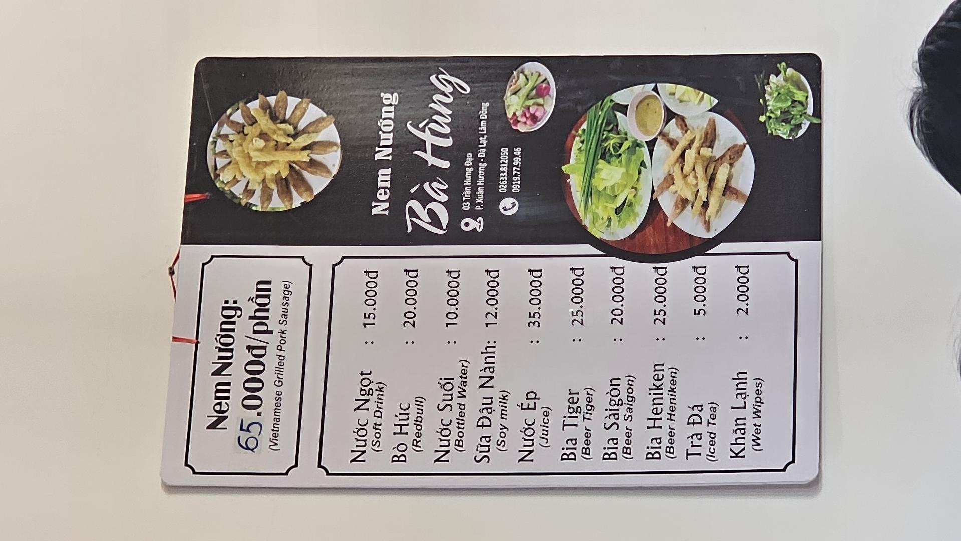 Nem Nướng Bà Hùng 주요 메뉴 가격