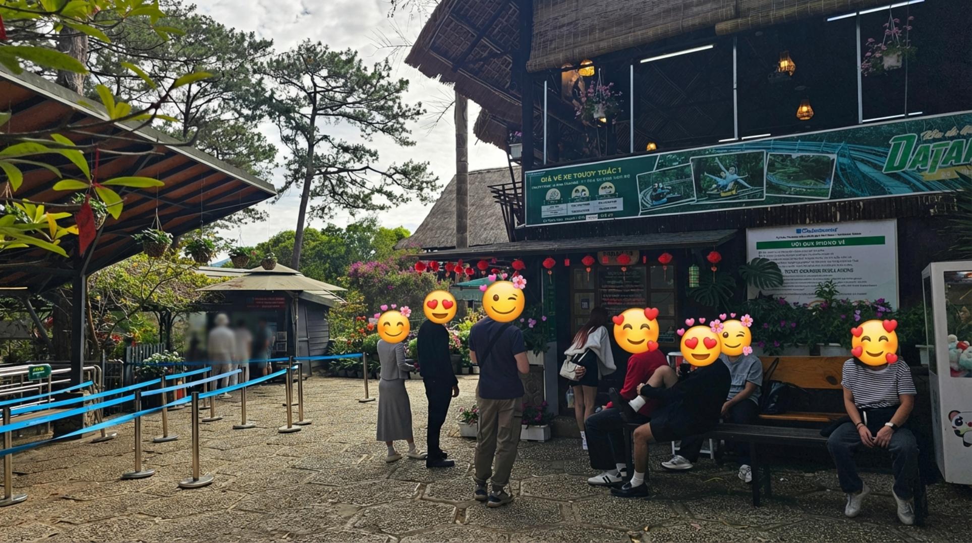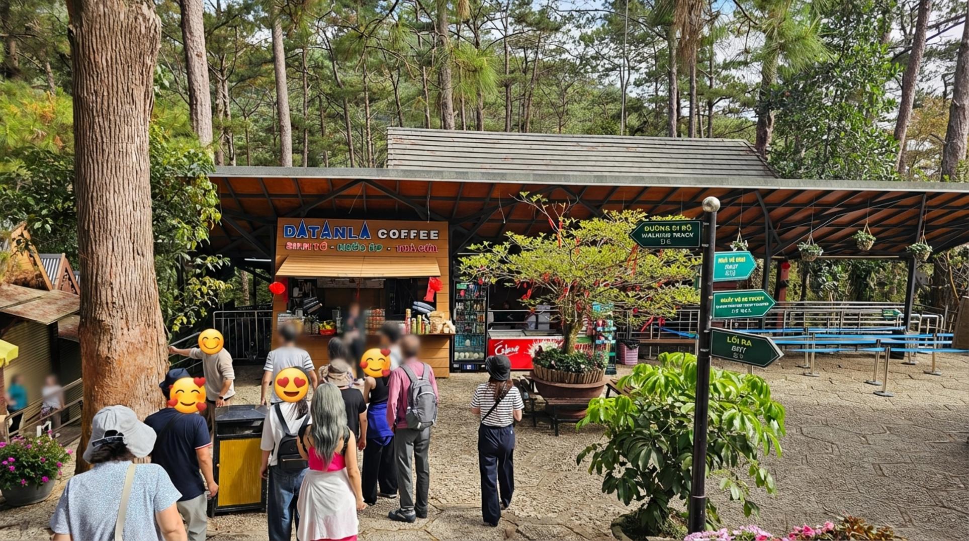 드디어 제 차례가 가까워졌어요. 초가 지붕 아래 길게 늘어선 줄을 보니 다딴라 폭포의 인기를 다시 한번 실감할 수 있었죠. 하지만 시원한 숲 바람 덕분에 기다리는 시간이 전혀 지루하지 않았어요. 오히려 주변 사람들의 들뜬 표정을 구경하며 저까지 덩달아 설레는 마음이었어요.