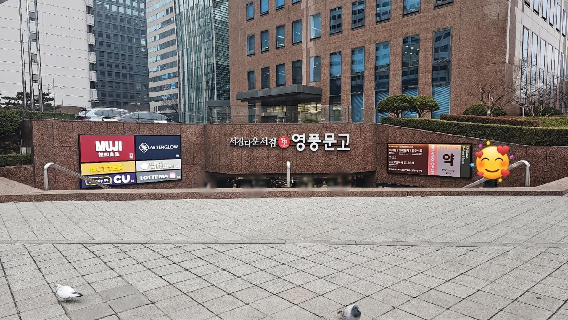 지하로 이어지는 익숙한 입구에 서니 탁 트인 광장과 현대적인 빌딩 숲이 어우러져 마음이 편안해지는 기분이었어요. 오늘은 어떤 새로운 이야기들이 나를 기다리고 있을까, 설레는 마음으로 안으로 들어갔습니다.