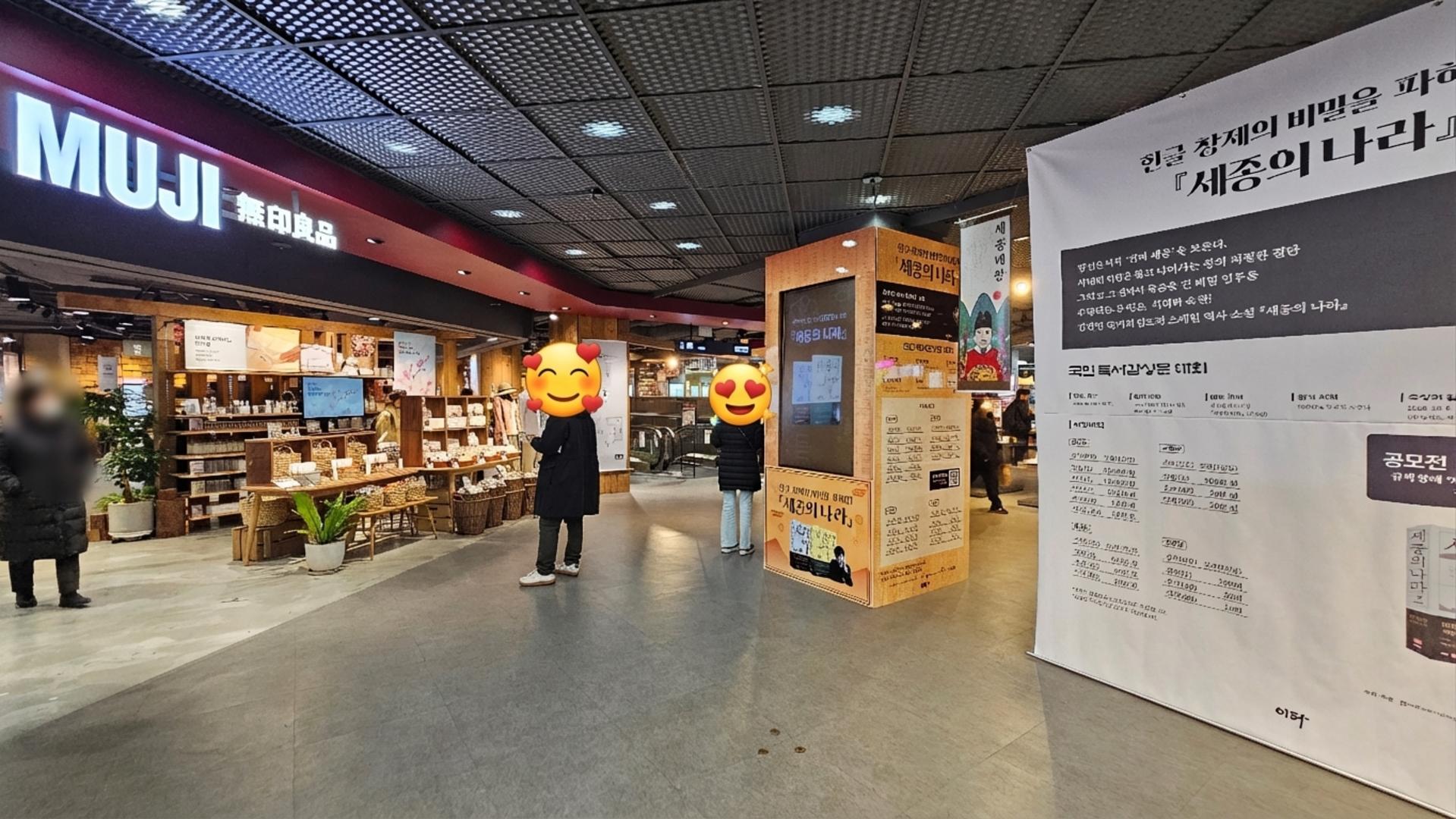 서점으로 들어서자마자 제 눈길을 끈 건 책이 아니라 무인양품(MUJI) 매장이었어요. 그리고 그 옆에는 김진명 작가의 신작 ‘세종의 나라’ 독서 감상문 대회 홍보물이 크게 자리 잡고 있었죠. 책과 라이프스타일, 그리고 흥미로운 이벤트가 자연스럽게 어우러진 풍경이 이곳의 매력을 말해주는 것 같았어요.