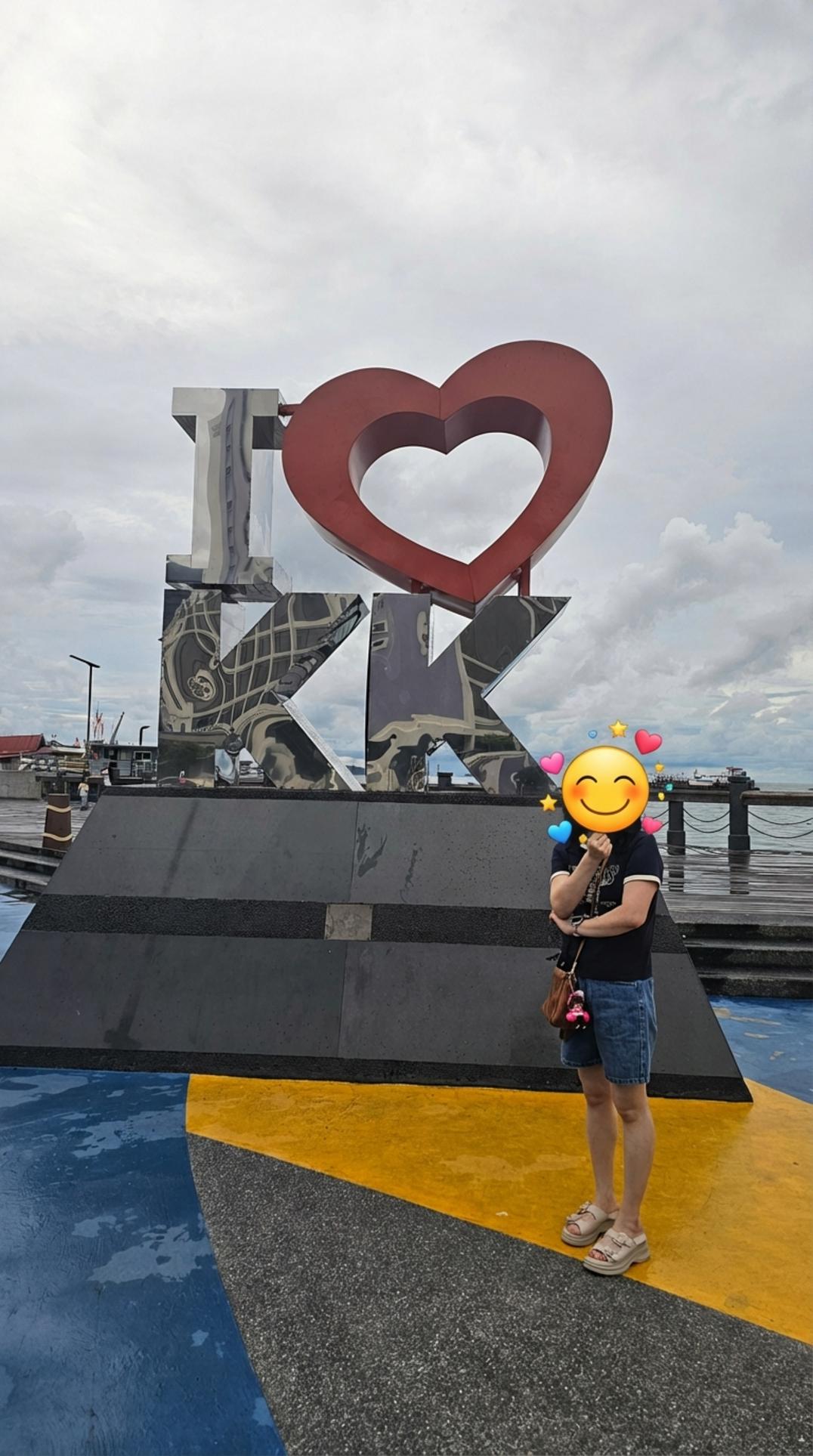 워터프론트의 상징인 ‘I Love KK’ 조형물 앞에서 인증샷도 빼놓을 수 없죠. 흐린 날씨였지만 마음만은 누구보다 맑았어요.