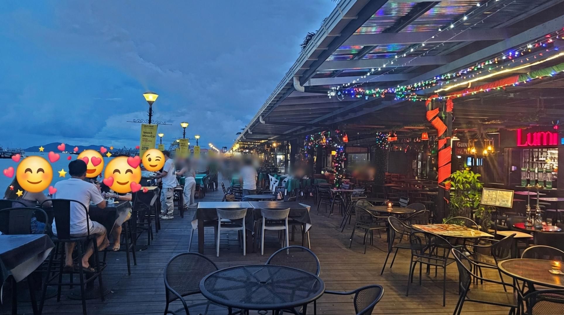 해가 진 뒤 워터프론트의 야외 테라스에 앉아 시원한 음료 한잔하니 이보다 더 좋을 수 없더라고요. 반짝이는 조명과 바다 내음, 사람들의 웃음소리가 어우러져 낭만적인 밤을 만들어줬어요.