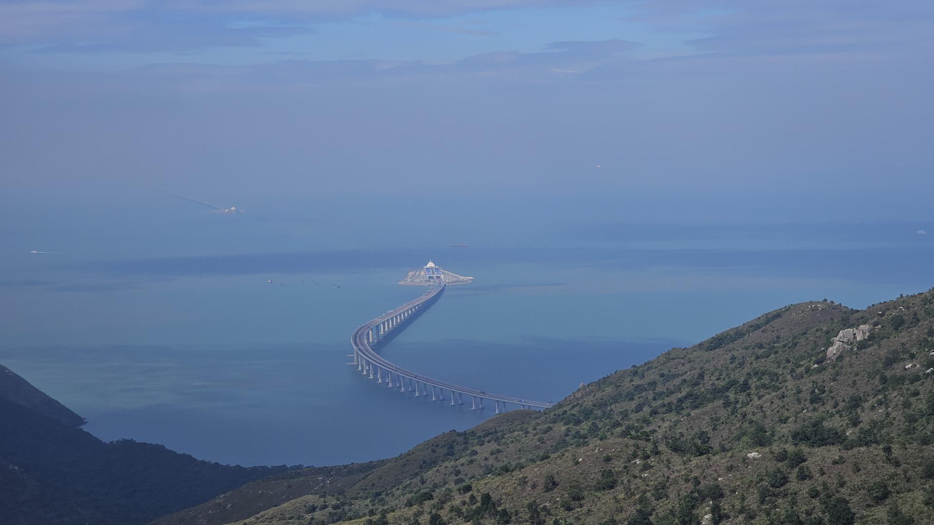 고개를 돌리니 이번엔 바다를 가로지르는 거대한 홍콩-주하이-마카오 대교가 그림처럼 펼쳐져 있었어요. 인간이 만든 거대한 구조물과 대자연이 이렇게나 잘 어울릴 수 있다니, 그저 감탄만 나올 뿐이었죠.