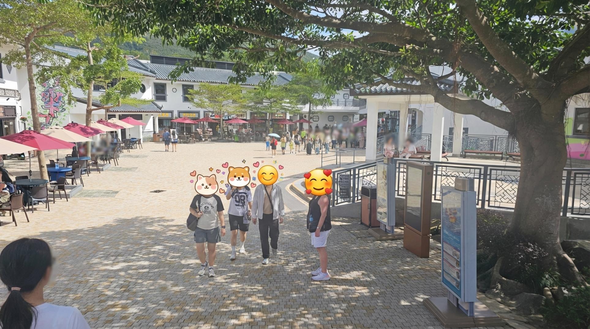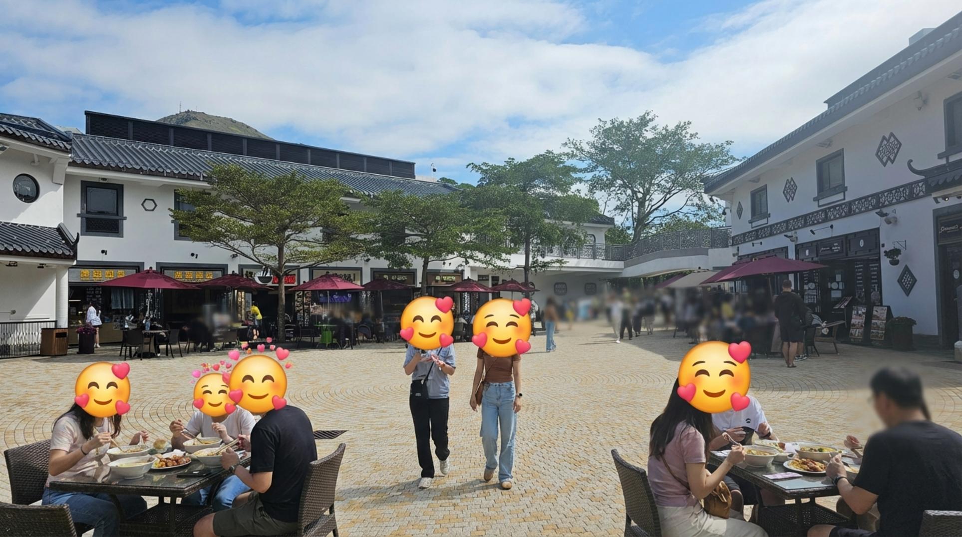 날씨가 어찌나 좋던지, 파란 하늘과 빨간 파라솔의 색감 대비가 정말 예뻤어요. 빅부다를 만나러 가기 전, 이 평화로운 광장에서 잠시 여유를 즐겼어요.
