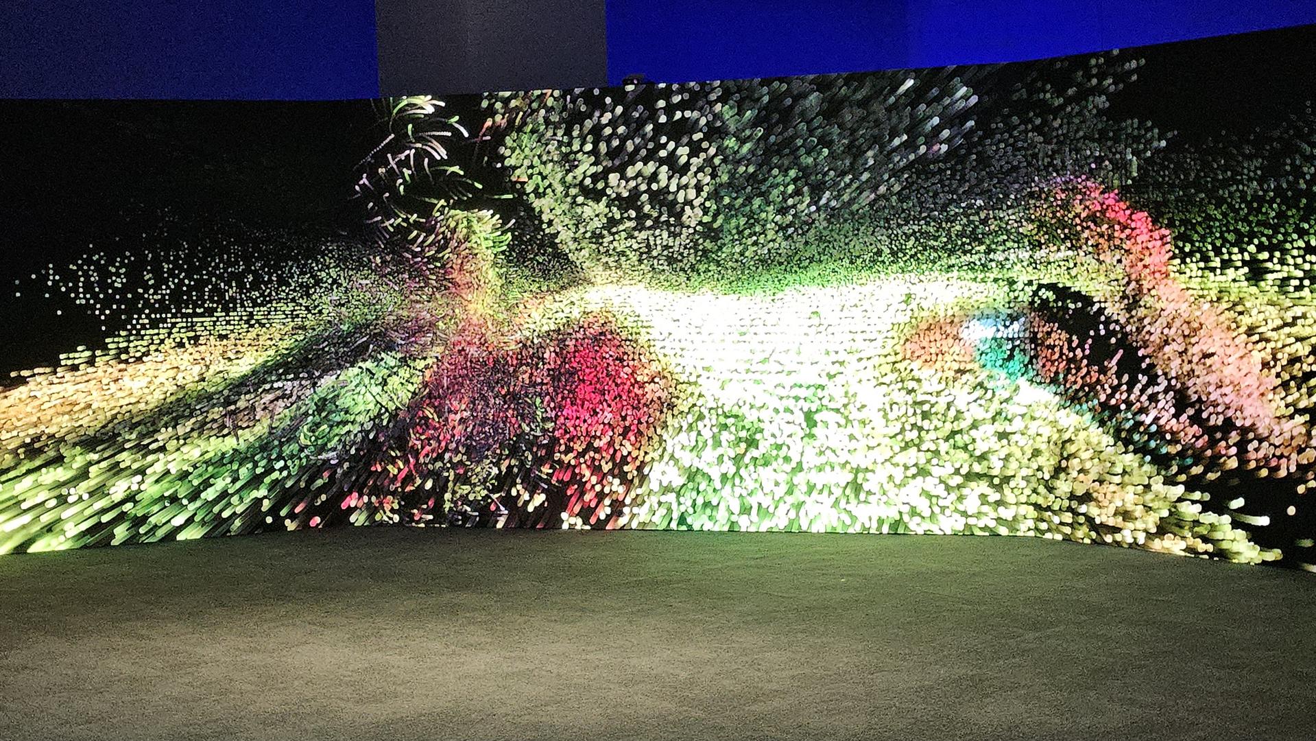 바로 옆 전시관에서는 빛의 파도가 넘실거리는 미디어 아트가 한창이었어요. 거대한 스크린을 가득 채운 색의 향연에 잠시 넋을 잃었죠. 마치 우주 속을 유영하는 듯한 기분이랄까요. 예술과 기술이 만나 만들어내는 이런 황홀한 경험 때문에 제가 전시회 구경을 좋아하나 봐요.