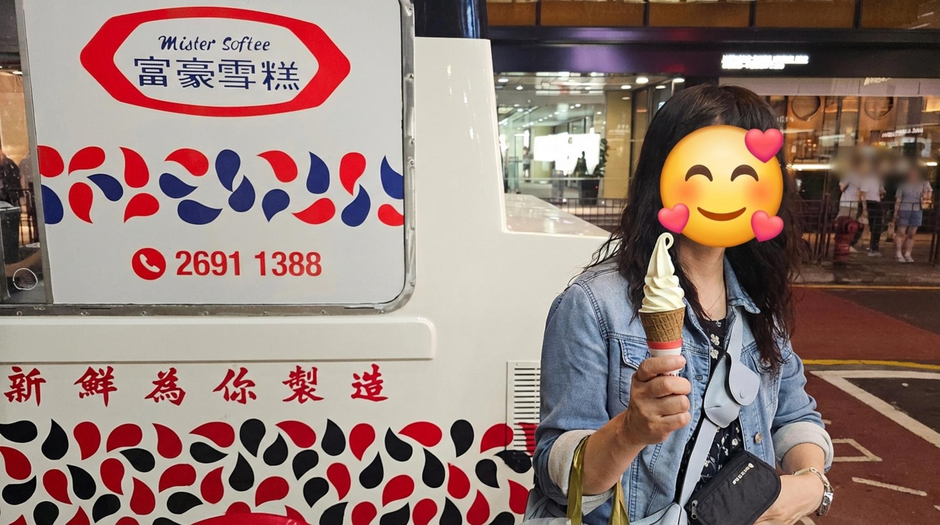 야경을 실컷 감상하고 나니 달달한 게 생각나더라고요. 그때 마침 저 멀리서 익숙한 멜로디가 들려왔어요. 바로 홍콩의 명물, 미스터 소프티 아이스크림 트럭이었죠. 이건 정말 그냥 지나칠 수 없잖아요? 망설임 없이 달려가 부드러운 소프트 아이스크림 하나를 손에 쥐었어요.