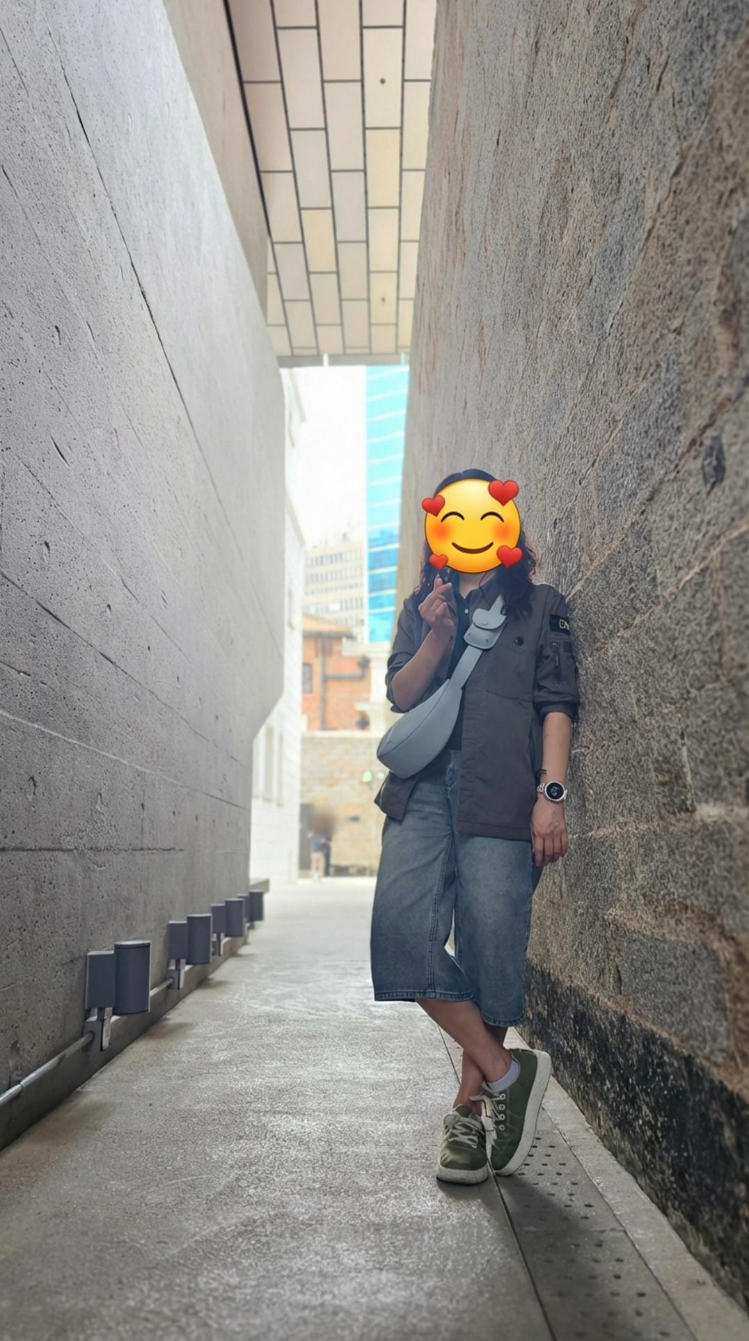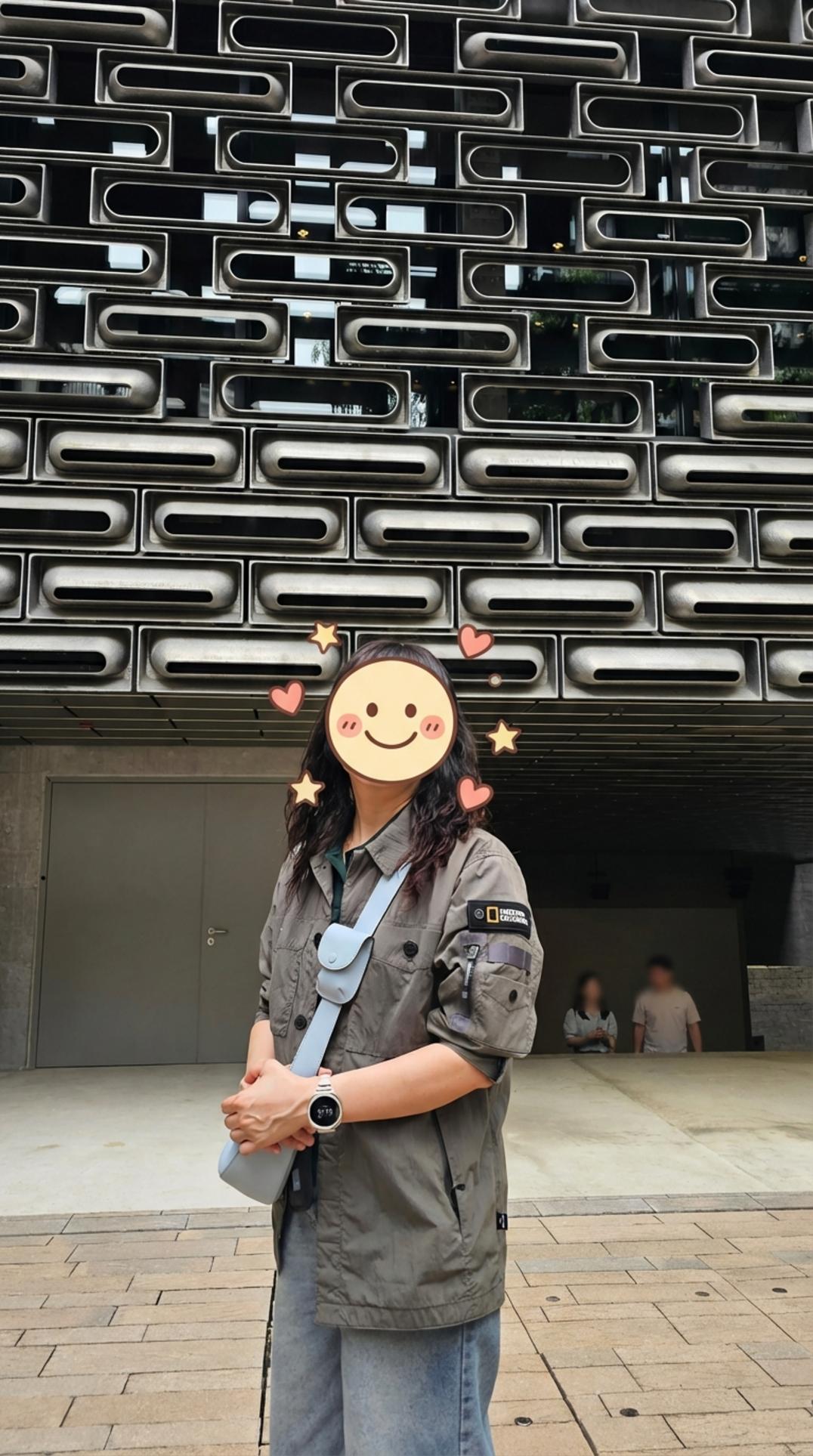 타이콴의 매력은 오래된 건물에만 있는 게 아니었어요. 세계적인 건축 스튜디오 ‘헤르조그 & 드 뫼롱(Herzog & de Meuron)’이 설계한 현대적인 건물, JC Contemporary의 외벽은 그 자체로 하나의 예술 작품 같았죠. 독특한 질감의 벽 앞에서 오늘의 여행룩을 기록해봤어요. 이런 멋진 배경을 그냥 지나칠 순 없으니까요.