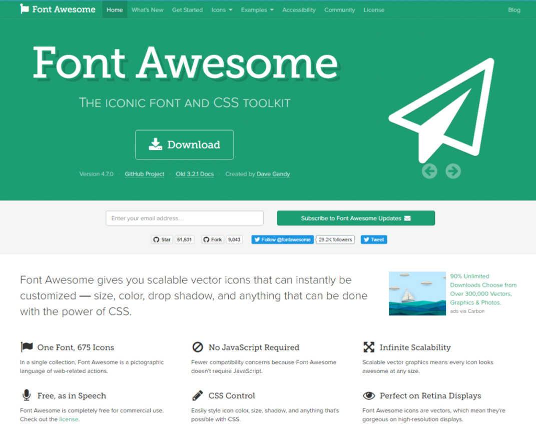 폰트어썸은 가장 유명한 대표적인 아이콘폰트 제공 사이트 입니다.