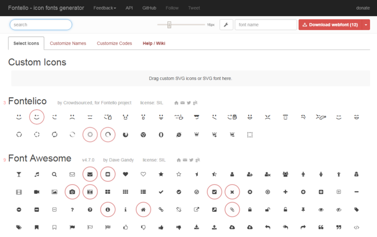 아이콘 폰트를 만들어 주는 대표적인 웹사이트가 fontello.com와 icomoon.io 가 있습니다.