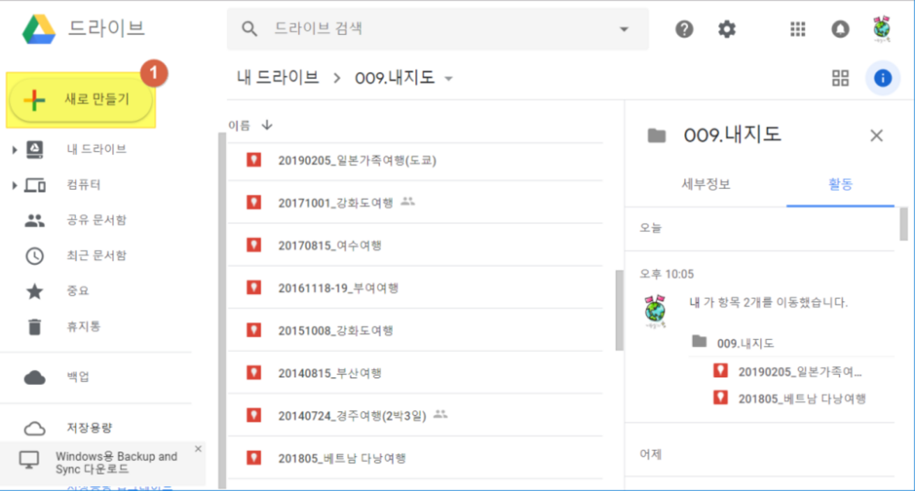 구글 드라이브에서 새로만들기 를 선택합니다.