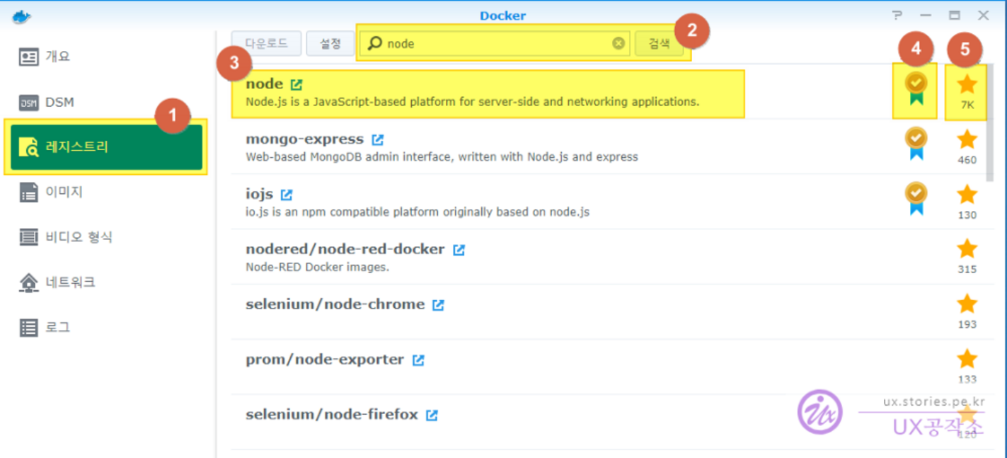 도커에서 Nodejs웹서버를 설치하고 띄우는 일은 간단하면서도 매우 유용한 작업입니다. 시놀로지 도커(Docker)은 주로 GUI로 설치를 진행하게되어 있어서 편리하기는 하나 아직 참고할 만한 자료들이 별로 없어서 처음 시도할 때는 애를 좀 먹게 되어 있습니다. 그래서 이번에는 시놀로지에 있는 도커(Docker) 스테이션으로 Nodejs 웹서버를 설치하고 실행하는 과정을 포스팅 해보려고 합니다.
