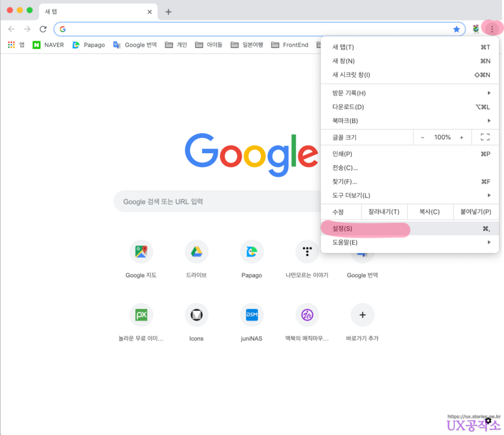 먼저 위와 같이 크롬의 설정화면으로 들어갑니다.