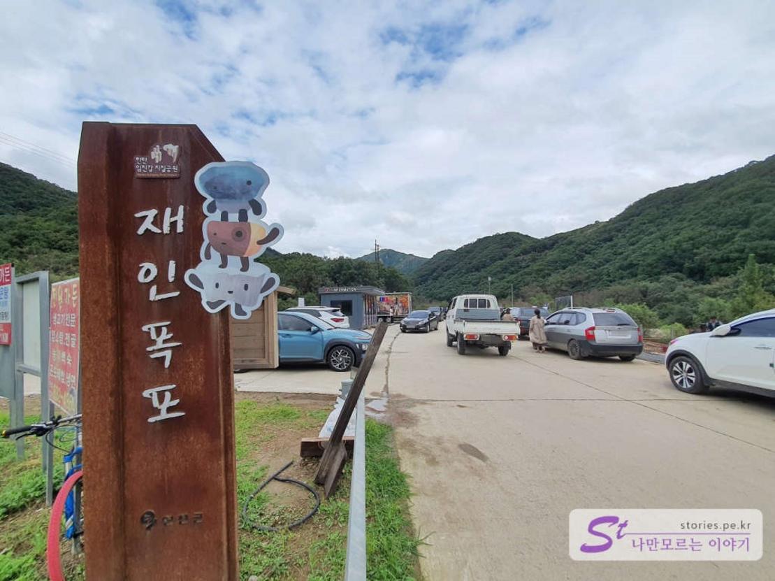주차장에 주차를 하고 길을 건너면 재인폭포로 가는 입구가 있습니다. 입구가 대단히 화려하지는 않습니다. 공사가 완공이 된다고 해도 그럴것 같네요.