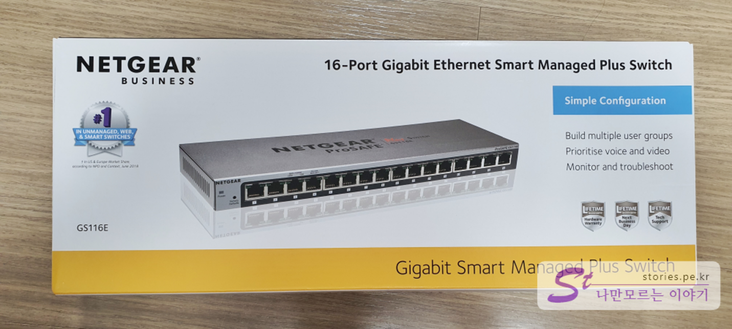 이게 제가 잘못 산 건지 원래 그런 건지는 모르겠지만 죄다~ 영어네요. 한쿡말은 한 글자도 없습니다. 직구 상품을 받은 느낌입니다. 이럴 거면 몇만 원이라도 저렴한 직구를 살 껄~~ 하는 생각도 드네요. 그래도 박싱은 멋집니다. 16 포트짜리 기가인터넷 스마트 매니지드 플러스 스위치라고 쓰여있네요. 그리고 간단한 구성 정도는 가능하다고 설명이 되어 있습니다. 그냥 랜선만 꽂으면 쓸 수 있는 비관리형 스위치이긴 한데 최소한의 모니터링과 관리를 할 수 있는 도구가 제공된다고 쓰여있습니다.
