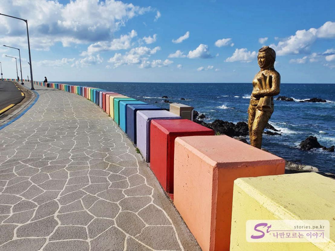 도두동 무지개 해안도로는 해변가 인도를 따라 방호벽이 줄지어 서있는데 각각 다른 색으로 칠해져 있어 사진을 찍을 때 예상보다 상당히 이쁘게 나오는 장점이 있습니다.