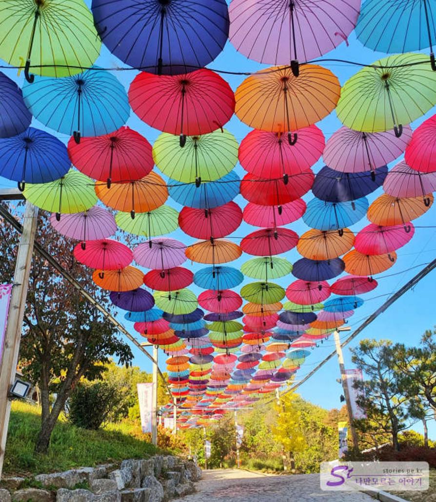 오르막 길이지만 운동한다 생각하고 걸어 올라가도 좋습니다. 우산길을 3곳을 지나가면 도착해요.
