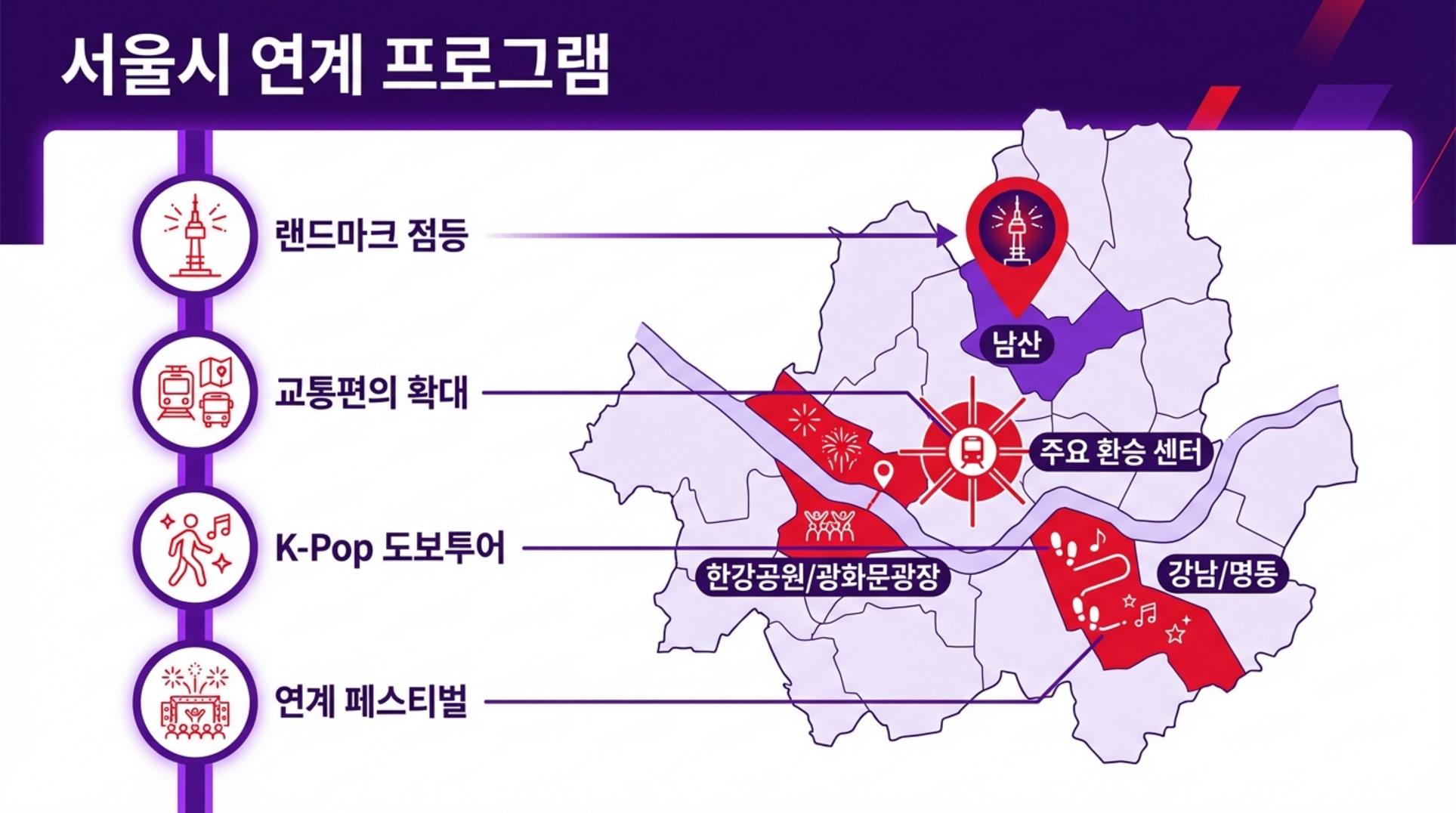 서울시는 BTS의 광화문 공연을 단순한 개별 행사로 보지 않고, ‘K-트래블’의 매력을 전 세계에 알릴 절호의 기회로 삼고 있습니다. 이를 위해 전방위적인 지원과 연계 프로그램을 가동하며 도시 전체가 들썩이고 있습니다.